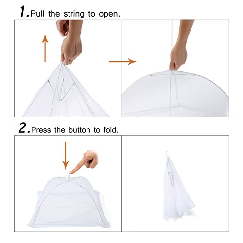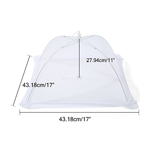 Studio : Jeteven Publisher : Jeteven Product Description Specifications: Material: Net Yarn Stainless Steel Color: White Size: 17"/43.18cm Height: 11"/27.94cm Package include: 4 x Food Covers Notice: Due to the difference between different monitors, the picture may not reflect the actual color of the item. Please allow 1-5mm error due to manual measurement. Thanks! 0