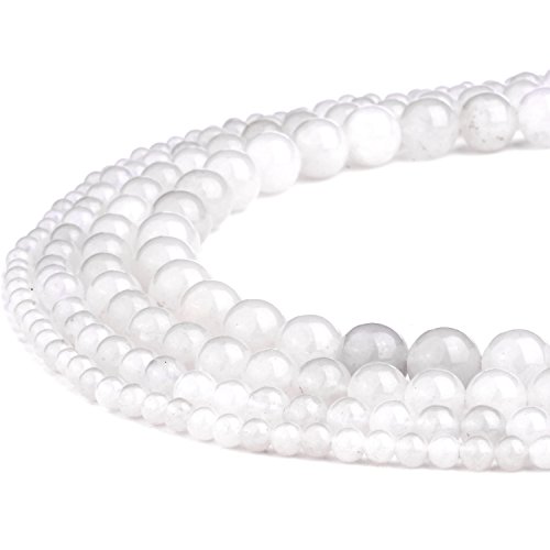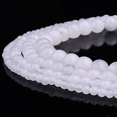RUBYCA Wholesale Natural White Jade Gemstone Round Loose Beads for Jewelry Making 1 Strand - 8mm