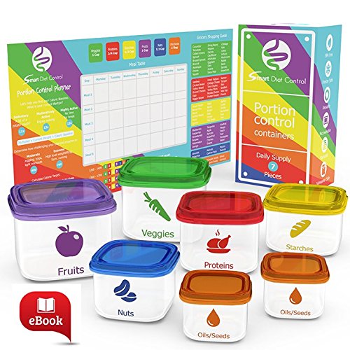 Smart Diet Control Portion Containers kit 7 Piece with eBook 21 day Meal Planner Complete Guide Leak Proof Microwave and Dishwasher Safe