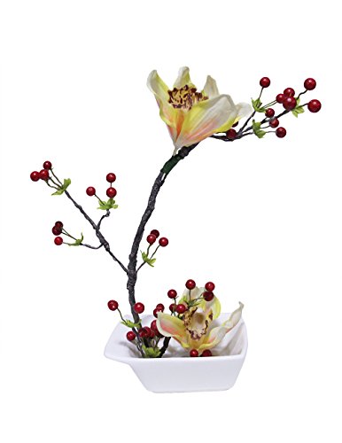 Dahlia Artificial Artificial Orchid with Berry Flower Arrangement Home Decoration, Yellow