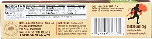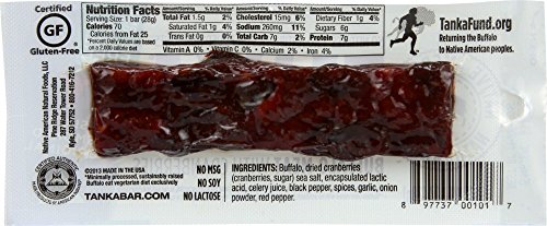 Made from tart-sweet cranberries and prairie-raised buffalo, the Tanka Bar Traditional is a tasty real food bar with a smoky, slightly sweet flavor. Based on a traditional Lakota recipe for wasna or pemmican, Tanka Bars are 100% natural and only 70 calories. More tender and moist than beef or bison jerky, Tanka Bars are the perfect food for anyone who's on the go -- outdoor enthusiasts, students, busy moms, athletes, and pow-wow dancers. Gluten-free, nitrites-free, MSG-free, hormone-free, dairy-free, soy-free and low-fat, the Tanka Bar is an authentic Native American food and deliciously suited for nearly every diet lifestyle.Feature