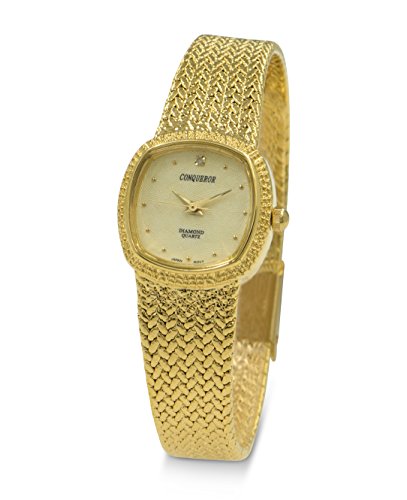Conqueror Gold Tone Mesh Bracelet and Diamond Women's Quartz Dress Square Watch with Diamon-