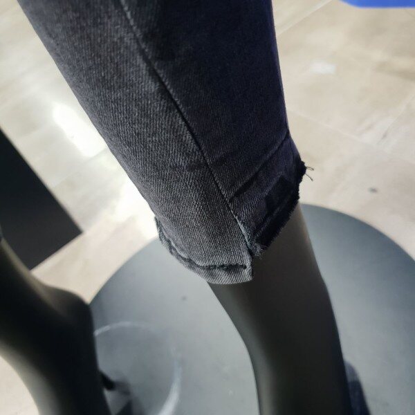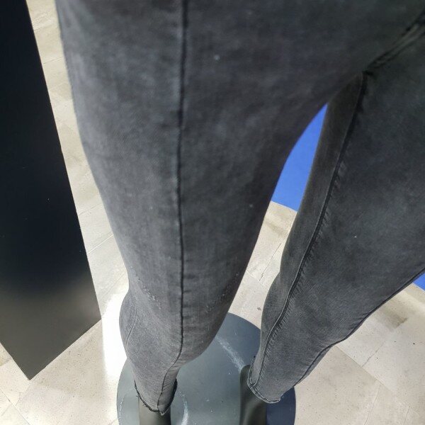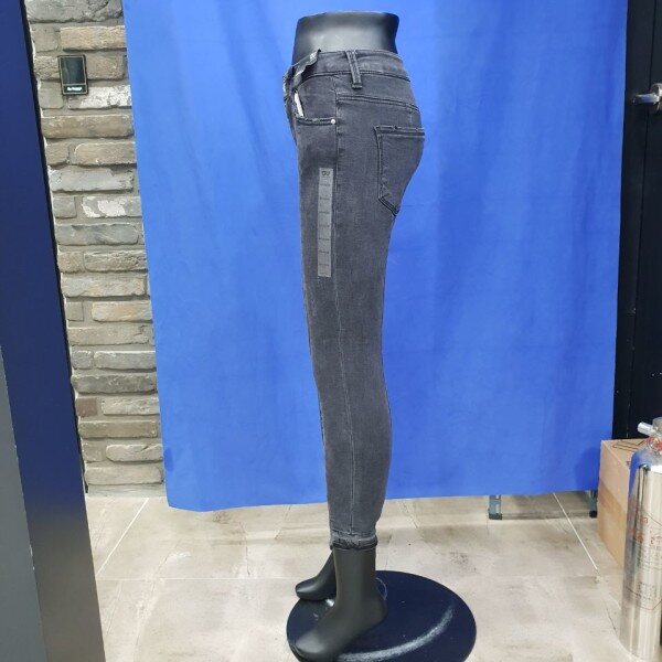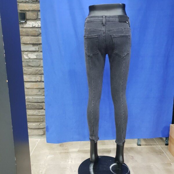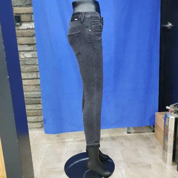 밑위가 편안한 블랙 워싱의 컴포트 라이즈 크롭 스키니 핏. 다리 라인을 따라 앞중심과 뒷중심에 절개가 되어 있는 트렌디한 디자인의 제품으로 슬림해 보이는 것이 특징. 밑단은 언밸런스 디자인으로 발목이 돋보이는 제품.( 여성사이즈->64(25),67(26),70(27),73(28),76(29),79(30)입니다.)