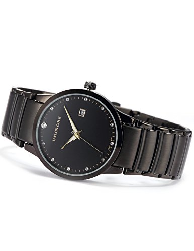 - Black watch with diamond shape crystal markers. Stellar mosaic processing drastically reduces the risk of crystals losening. Diamond shape cutting of the crystals refracts light beautifully, glitering a feminine glow.