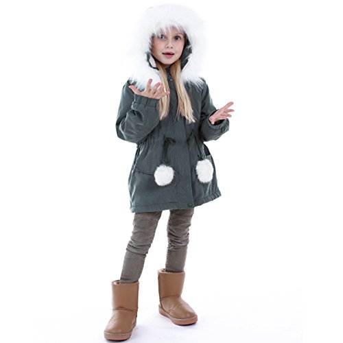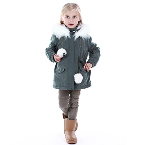 It is Baby Girls Hooded Fur Cotton Coat, Shell:polyester, filling: 95% Cotton .It suit for 4-9 years old Kid . It has 6 size,suit for 4T, 5T, 6T, 7T, 8T, 9T Kids, Red and Army Green 2 Colors for choose. Zipper Fly, easy to dress . Machine Washable . Waisted Design .Fur Hooded keep your kid warm and comfortable . All in stock , If you have any problem ,just contact us .Feature