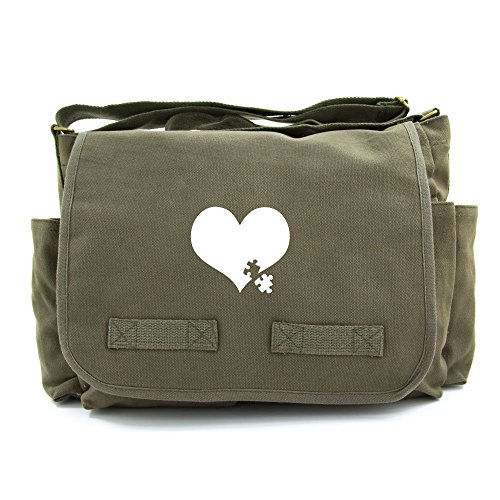 -. Title : Autism Awareness Heart Puzzle Army Heavyweight Canvas Messenger/Diaper Shoulder Bag