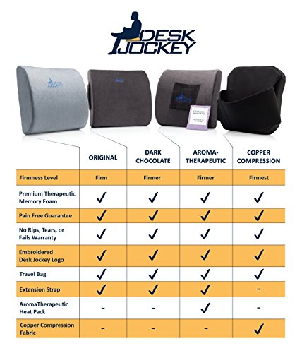 -. Feature : SHIELD YOURSELF FROM BACK PAIN - The intelligent LUMBAR SUPPORT SYSTEM eliminates back pain by keeping ears, shoulders, and pelvis (hips) in total alignment all while maintaining the natural inward curvature of your lower spine... imagine being pain free WITHOUT SURGERY, PILLS, or CREAMS! / NO CHEMICAL SMELL - We offer a leading standard you'll notice the moment you unwrap your new Desk Jockey lumbar support cushion... In that first sitting moment... the realization of quality is there.... soothing, molding, and caressing itself to your unique body shape without the headache inducing strong chemical odor emanating from other lumbar cushions. / YOUR NEW BEST FRIEND - Ingenious design enables IMPRESSIVE VERSATILITY... you can take it everywhere you go... Long Car Ride? No Problem... Stuck in the cubicle all day? Your day will fly by in comfort, and your productivity will soar through the roof! / EVERLASTING GOBSTOPPER - You can sit, and sit, and sit and it WILL NEVER GO FLAT! / TRY IT RISK FREE WITH OUR PAIN FREE GUARANTEE - We believe so strongly that THIS IS WHAT YOU'VE BEEN SEARCHING FOR that WE GUARANTEE IT! Backed with a 100% Money Back Guarantee and AMAZING customer support.