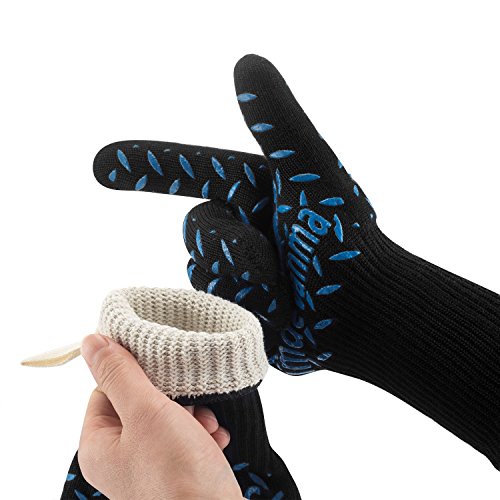 Made of high quality materials, these grill gloves absorb even the slightest hint of heat, so that even the hottest object feels like it came straight out of the fridge,100% Aramid/Fiber/Silicone and can withstand 932°F(MAXIMUM).