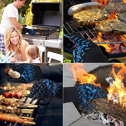 simdevanma Oven Gloves Heat Resistant Cooking Mitts-BBQ Grilling Big Green Egg- Fireplace Accessories and Welding,Cut Resistant and Forearm Protection with High Performance Heat Resistance