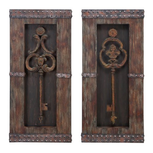Urban Designs 7720486 2 Piece Vintage Metal Keys Wall Art Decor Set, Brown