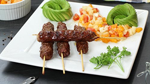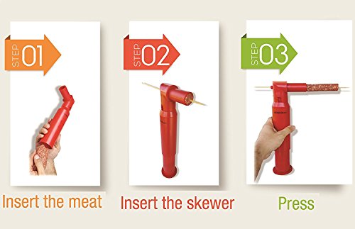 - ★ MEAT PRESS AND SKEWER CONTAINER - First of its kind meat press that makes the complicated process of putting ground meat on a stick easy and fun. Whether it is ground beef, turkey, chicken, or game meat, Easy Kabob can do it in as fast as 3 seconds.
