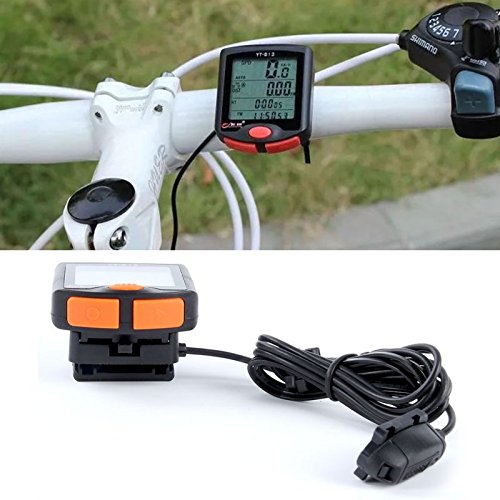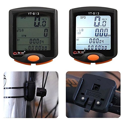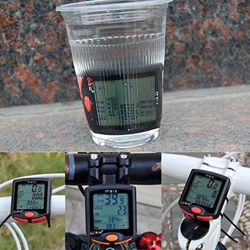 -. Feature : Multifunctional cycling computer,speed,odometer.average speed.max speed.down counting.calories,temperature,time displaying etc. / With backlight,Which makes you see clearly the cycling data on the cycling computer's screen. / With larger screen displaying,compared with other bicycle computers / Waterproof design,makes you ride the bicycle with this bicycle meter even when it rains outside. / This cycling computer is a must-have gadget for those cycling fans,who do cycling a lot,and great for a cycling race.