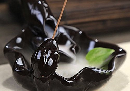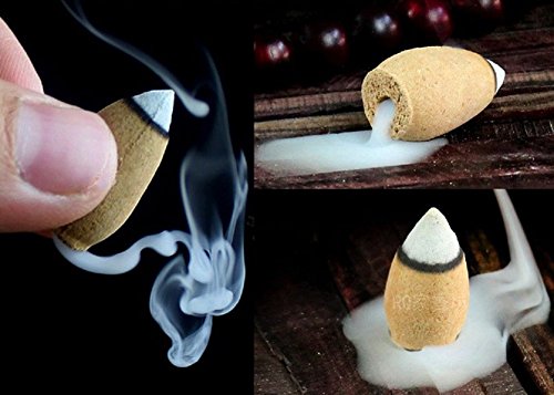 Material: Ceramic, Dimensions: 4.3×2.5×3.9 inches. Note: Please use the back flow type of cone incense that is a hole at the bottom. (Example: last image)
