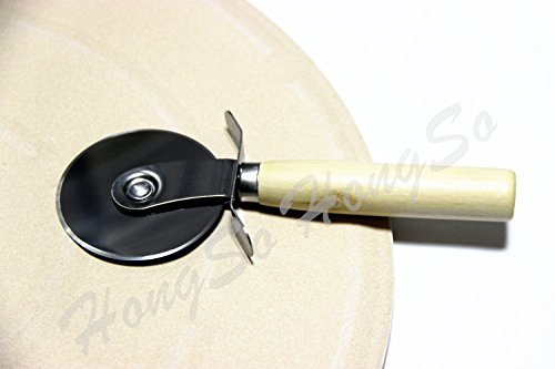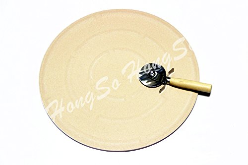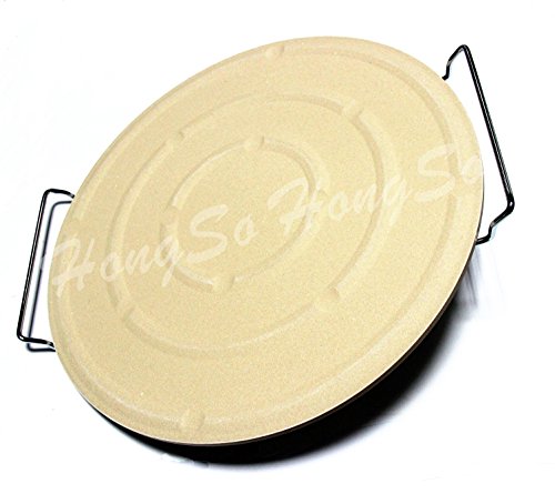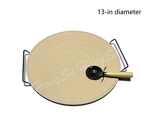 Hongso CRR13 Round Ceramic Pizza Stone, Baking Stone with Carry Rack and Pizza Cutter (13 inch)