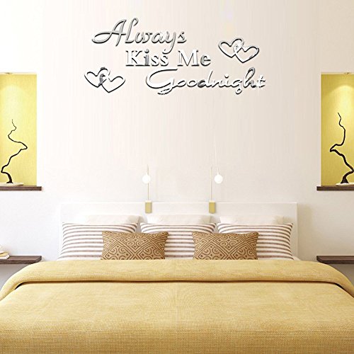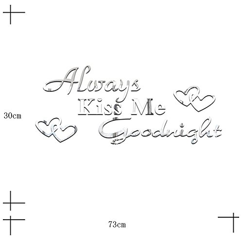 ufengke® 3D "Always Kiss Me" & "Goodnight" Mirror Effect Wall Stickers Fashion Design Art Decals Home Decoration Silver