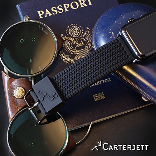 Apple Watch Band 42mm Large / XL TIRE TREAD by CARTERJETT / Black Silicone Rubber iWatch Band 42mm with Space Black Adapters and Buckle for ALL 42 mm Apple Sport, Edition, Series 1 & Series 2 Models