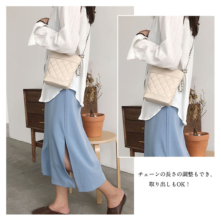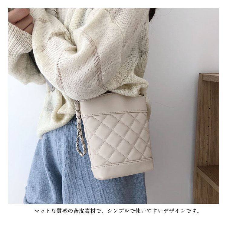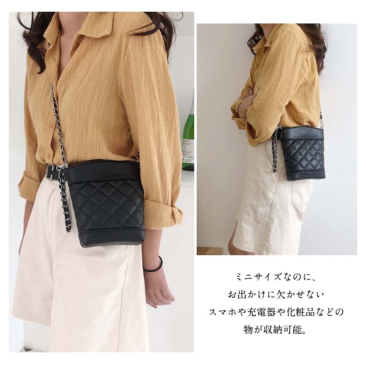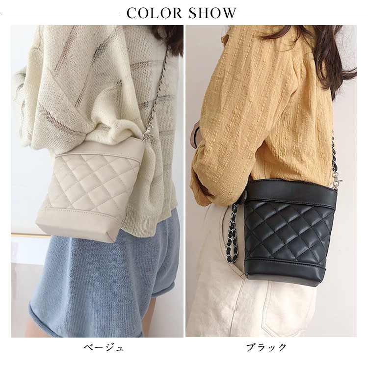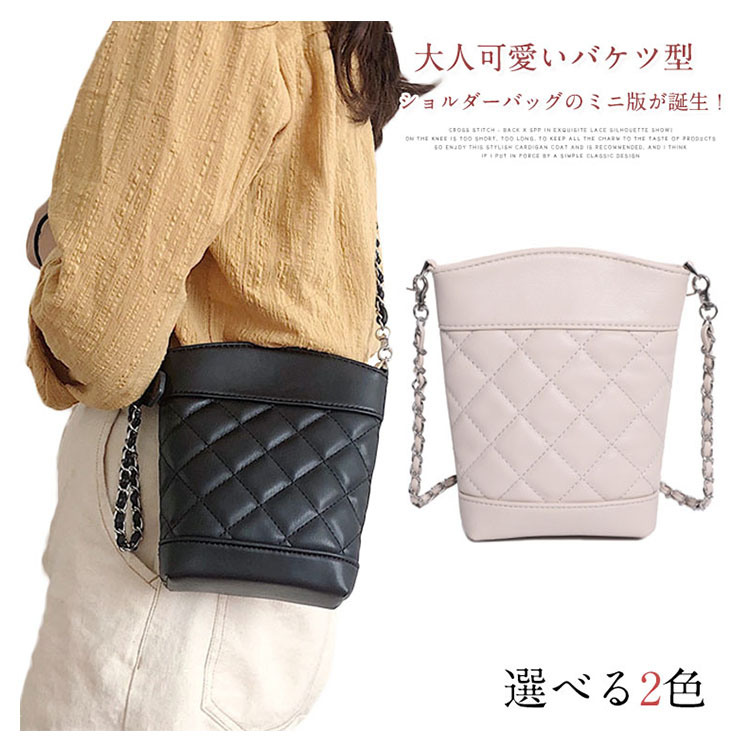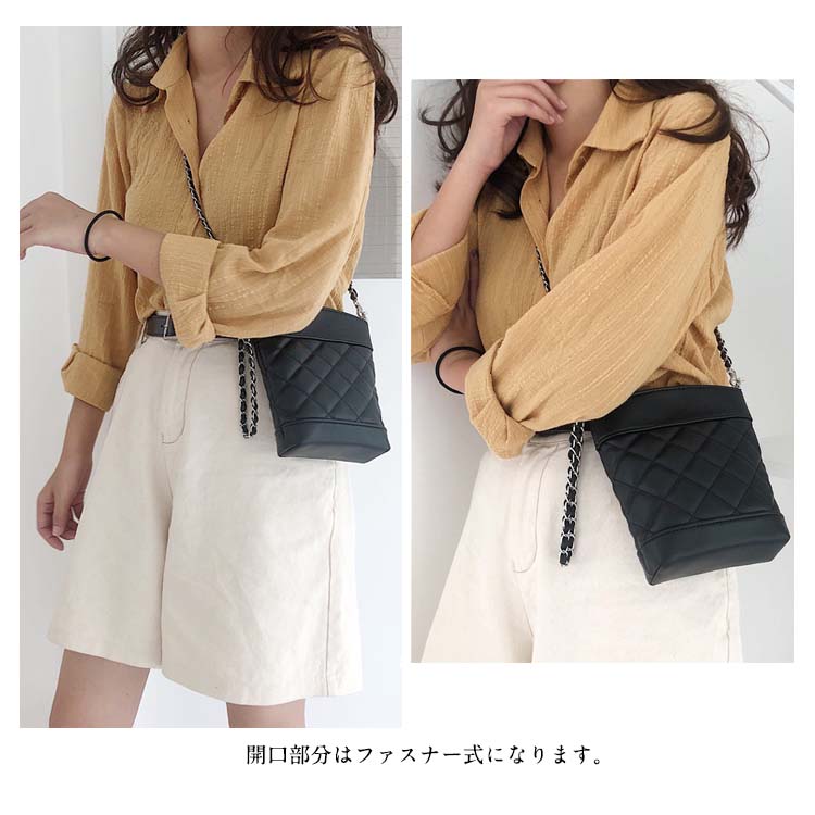 | 大人可愛いバケツ型ショルダーバッグのミニ版が誕生!マットな質感の合皮素材で、シンプルで使いやすいデザインです。開口部分はファスナー式になります。ミニサイズなのに、お出かけに欠かせないスマホや充電器や化粧品などの物が収納可能。チェーンの長さの調整もでき、取り出しもOK!落ち着いたベージュとブラック展開で年齢も問わず着用頂けます。 | |