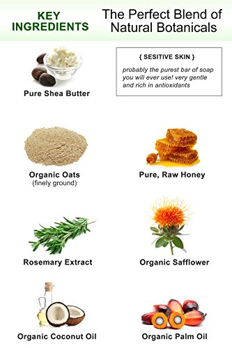 "SENSITIVE SKIN" organic bar soap is probably the PUREST bar of soap you will ever use. It's an ULTRA RICH moisturizing bar loaded with a perfect balance of Shea Butter, Pure Honey and finely Ground Oatmeal that is perfect for all skin types.