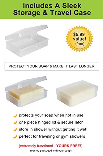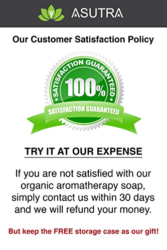 FREE STORAGE & TRAVEL CASE ($5.99 VALUE): Protects your soap when not in use & makes it last much longer. One piece, clear see-through case with hinged lid and secure latch, store soap in shower without getting it wet, PERFECT FOR TRAVELING OR GYM USE, keep soap dry and lock in aromatherapy freshness. Now you can enjoy & experience the therapeutic benefits of ASUTRA soaps anywhere you go - a MUST HAVE!