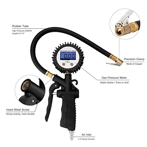 ★NEW DESIGN WITH SAFER PARTS: Data is more accurate, achieve to ±0.01 and 0.01-0.02 error of tire pressure. Connecting with thicker hose, it could avoid hose blow up by high pressure.