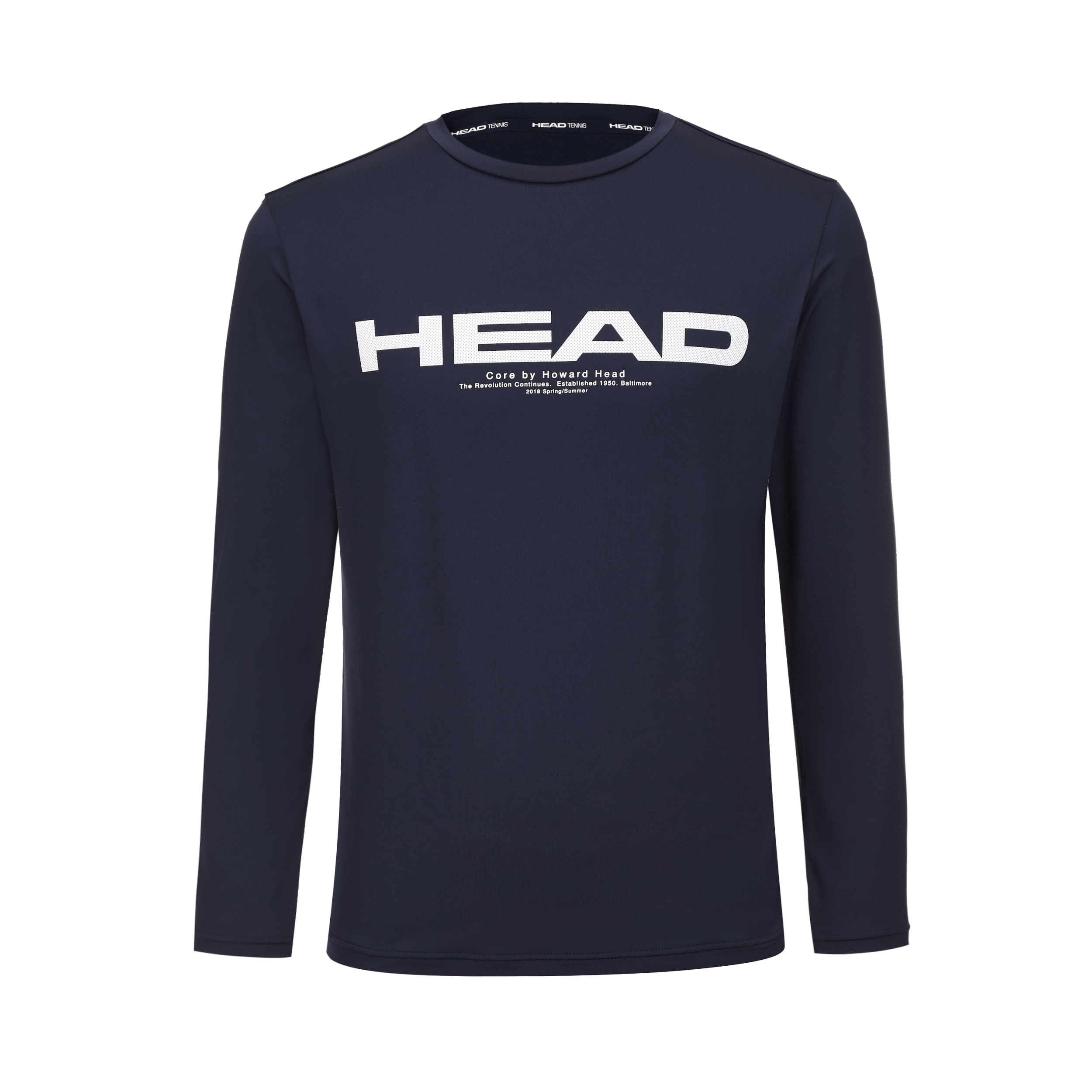 - HEAD 로고와 브랜드의 아이덴티티를 담은 레터링이 포인트인 남성 긴팔 티셔츠.