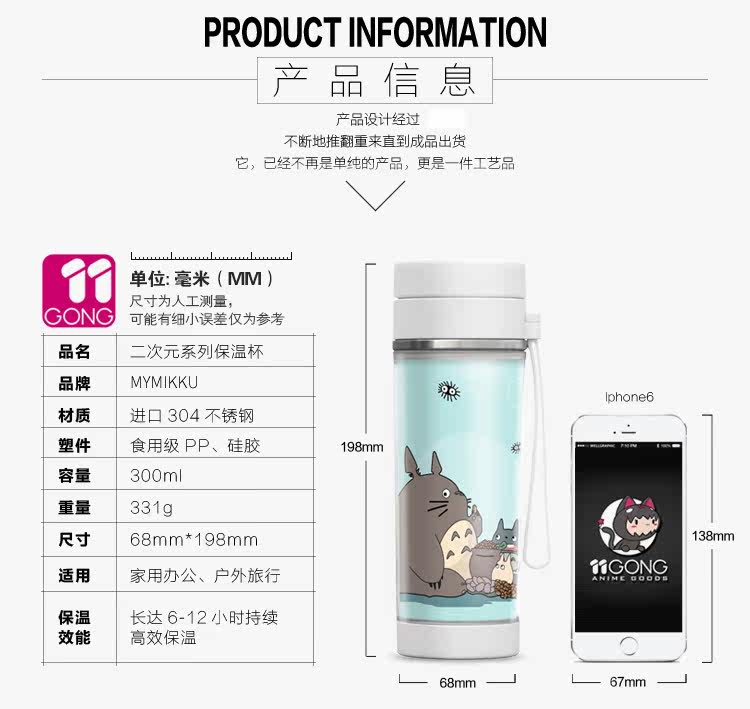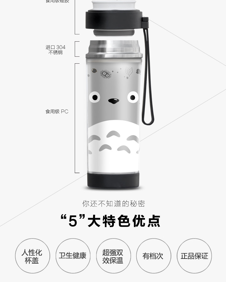 宫崎骏 龙猫周边 304双层真空不锈钢保温杯 动漫卡通水杯子
