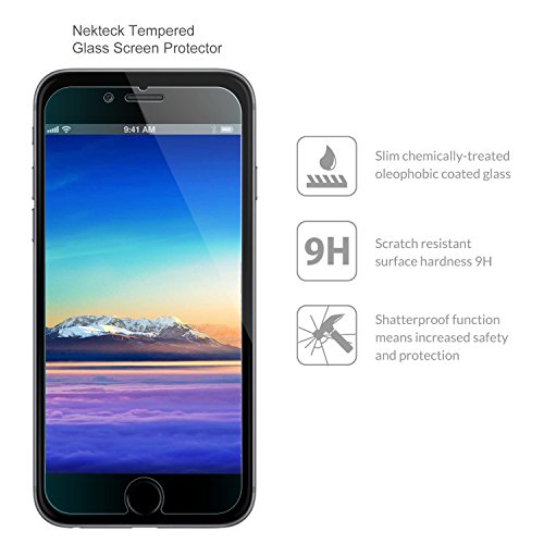 Keep your electronic device clean and clear with a Nekteck Screen Protector for Apple iPhone 6S/ 6. This shatterproof tempered glass screen protector offers ultimate protection against scratches, dust, dirt and debris.This Nekteck screen protector also has advanced HD clarity in a tempered glass surface that accentuates sharp images and vibrant colors for advanced viewing. This case friendly screen saver provides an improved grip without adding bulk to maintain a slim profile. It is pre-cut to specifically fit an Apple iPhone 6 and is equipped with all accessories needed that make the application process simple and accurate.