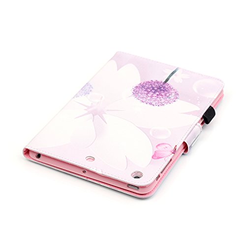iPad Mini 1/2/3 Case-LittleMax(TM) *Pen Slot* Synthetic Leather Kickstand Case *Smart* Wake/Sleep Cover Flip Wallet iPad Mini 3/2/1 Protector [Free Cleaning Cloth,Stylus Pen]-#1 Purple Dandelion