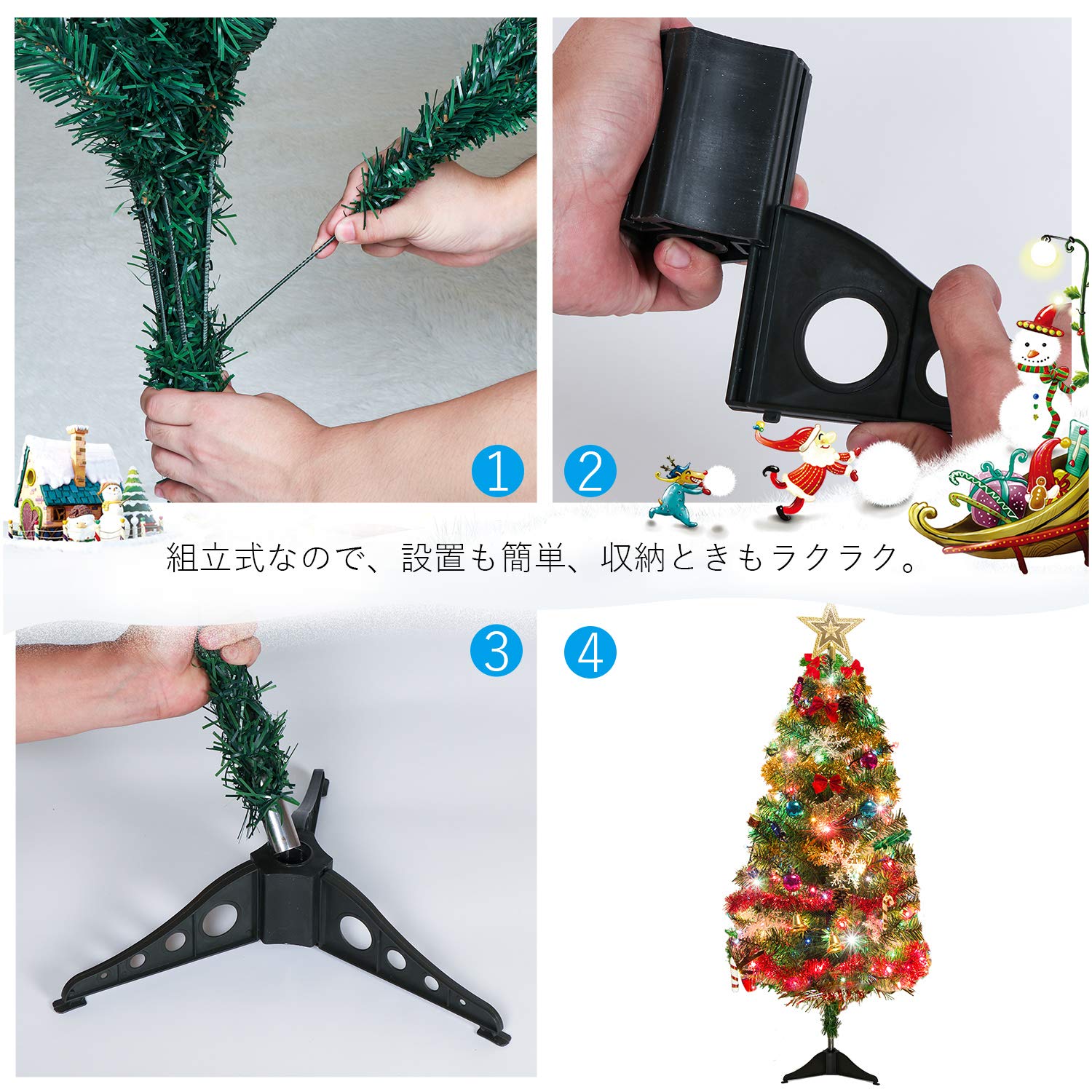 【簡単設置・収納】 組立式のため、オフシーズン時にはコンパクトに収納できます。どこに置いても邪魔にならなくて、雰囲気作りにぴったりのクリスマスツリーです。
