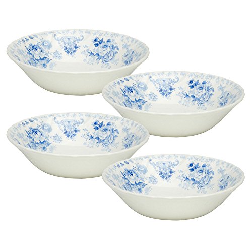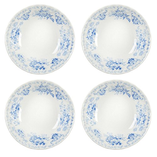 Queen's Oriental Garden Blue Floral Cereal Soup Bowls Made in England, 12-Ounce, Set of 4