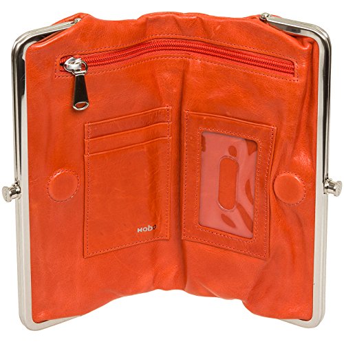 Seamlessly mixing style and function, this Vintage Lauren Leather Clutch Wallet by Hobo transitions perfectly from day to night! This tri fold wallet is made from top-grain genuine leather that has been extra tumbled for a unique, broken-in vintage look. The interior of this clutch contains 3 card slots, 1 clear ID window, and a roomy zippered pocket that's kept secure by a magnetic closure. One clasp compartment features 2 bill compartments & 6 card slots while the other contains a zipper pocket and space for your cell phone. The abundance of storage compartments gives you plenty of options to keep your essentials organized. Measures 8.75" x 5" x 2", folds out to 9.25" wide.Feature