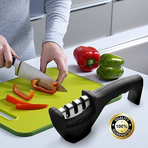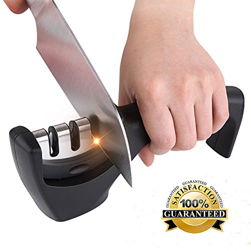 3.▶SAFE, VERSATILE, AND EASY-TO-USE: Whether you're right or left-handed, the ergonomic handle allows you to restore your cooking knives in a matter of seconds! 3-4 pulls through the sharpener is all, it takes to restore any knife to a precision edge. No tedious grinding and no worries about damaging your expensive knives with handheld stones.