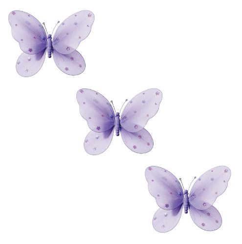 Hanging Butterfly Purple Nylon Butterfly with Sequins and Glitter for Baby Nursery Bedroom, Girls Room Ceiling Wall Décor, Wedding Birthday Party, Baby Bridal Shower Butterfly Decoration
