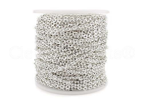 CleverDelights Rolo Chain Roll - 100 Feet - Shiny Silver Color - 3x4mm Link - Bulk Oval Chain Spool