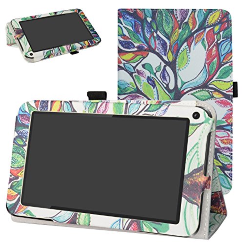 DigiLand DL718M / DL721-RB Case,Mama Mouth PU Leather Folio 2-folding Stand Cover with Stylus Holder for 7.0" DigiLand DL718M / DL721-RB Android Tablet,Love Tree