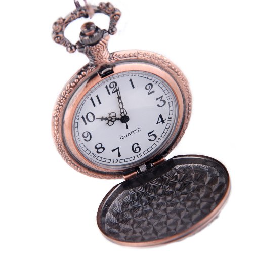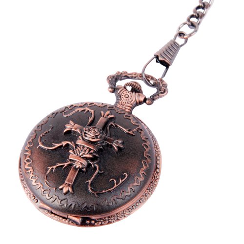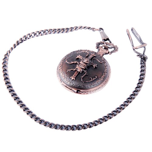-. Title : Pocket Watch Bronze Cross Motif Arabic Numerals with Chain Full Hunter Neo Vintage Steampunk Design PW-21