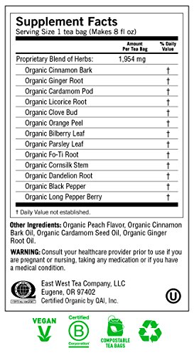 -. Feature : Intriguing and delicious blend of herbs used to support the body's natural cleansing processes / Blend of ginger, black pepper and long pepper that supports increased circulation / Organic dandelion adds rich, roasted notes and helps to support healthy liver function / Added fo-ti root supports liver and kidney function / Naturally caffeine free