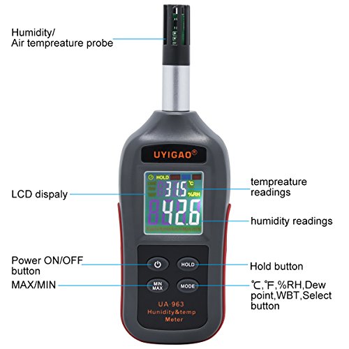 Digital Temperature and Humidity Meter UYIGAO LCD Mini Psychrometer Thermo-Hygrometer with Dew Point and Wet Bulb Temperature Hygrometer for Industry, Agriculture, Meteorology and Daily Life