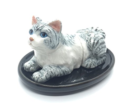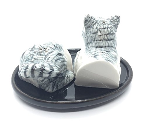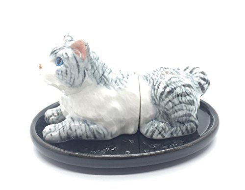Cute Small Ceramic White Cat Salt and Pepper Shakers Set Hand Painted Unique Design