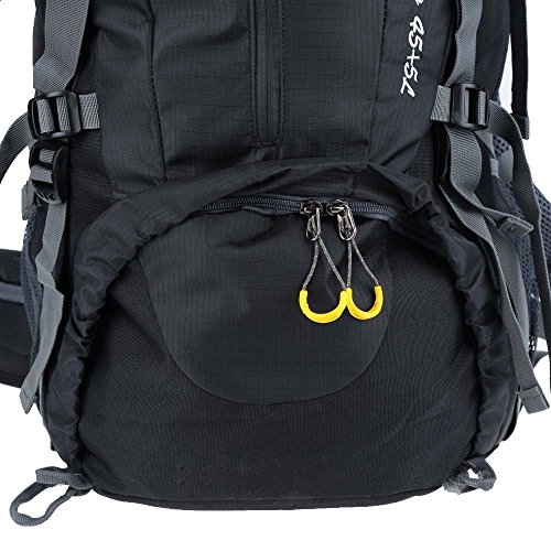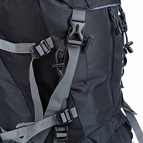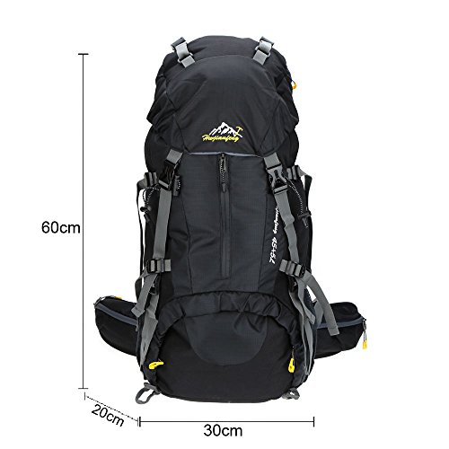 Product Description Features: Crafted from water resistant and tear resistant nylon fabric, very durable. Features spacious main compartment and numerous pouches with large capacity. With strong hanging system to carry more items. Ergonomic padded shoulder straps and back support for best ventilation and easing burden. Adjustable chest belt and waist belt. Rain cover stored in a bottom pocket.