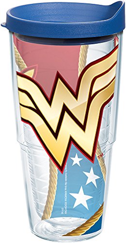 Truth be told, this colossal WONDER WOMAN™tumbler uses its power for good by keeping drinks hot or cold and out of the hands of evil.