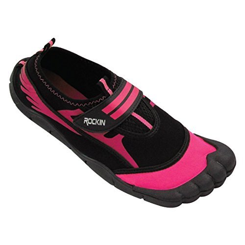 -. Binding : Apparel -. Brand : Rockin Footwear -. Department : womens -. Feature : The amphibious design will protect your toes & feet from sand to surf. / Easy on & off hook and loop closure. / Extra durable traction sole will keep you sturdy and reduce slips. / Breathable mesh panels & Velcro strap. Made of durable rubber for longer lasting. / These run LARGE, order a size down. -. Label : Rockin Footwear -. Manufacturer : Rockin Footwear -. NumberOfItems : 1 -. PackageQuantity : 1 -. ProductGroup : Shoes -. ProductTypeName : SHOES -. Publisher : Rockin Footwear -. Studio : Rockin Footwear -. Title : Rockin Footwear Womens Aqua Foot Water Shoes