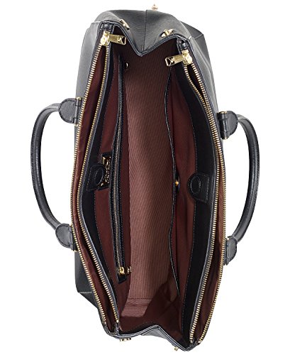 -. Brand : -. ClothingSize : One Size none US Women -. Color : Black -. Department : womens -. Feature : Double top zip and magnetic snap closure / Interior features 1 zip pocket and 3 slip pockets / Exterior features gold-tone hardware, logo lage tag and LRL monogram / 5-1/2"L double handles; 17"L adjustable detachable strap / 16" W x 11" H x 6-3/4" D -. Label : LAUREN -. Manufacturer : LAUREN -. MPN : 431186080CDE -. PackageQuantity : 1 -. PartNumber : 431186080CDE -. ProductGroup : Shoes -. ProductTypeName : HANDBAG -. Publisher : LAUREN -. Size : Large -. Studio : LAUREN -. Title : LAUREN Women's Newbury Double Zip Satchel Top Handle Handbag