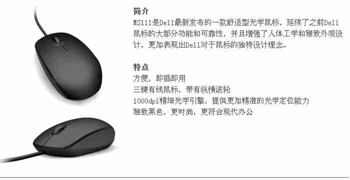 Dell 戴尔 MS111 USB 有线游戏光电鼠标 笔记本鼠标