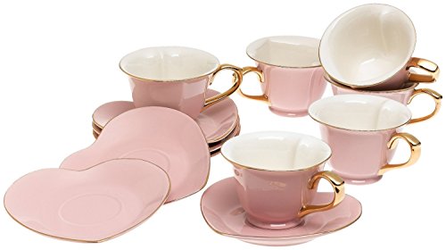 -. Brand : Yedi House -. Color : Pink/Gold -. EAN : 0689214226033 -. Feature : Set of 6 whimsical heart-shaped tea cups with coordinating saucers; 5-ounce capacity cups / Made from fine porcelain / Comes in its own satin-lined hatbox / Hand wash only; not microwave safe -. Label : Yedi House -. Manufacturer : Yedi House -. Model : CC159 -. MPN : CC159 -. PackageQuantity : 6 -. PartNumber : CC159 -. ProductGroup : Kitchen -. ProductTypeName : KITCHEN -. Publisher : Yedi House -. Studio : Yedi House -. Title : Inside Out Heart: Cup & Saucer 5 oz- Pink/Gold (Set of 6) -. UPC : 689214226033