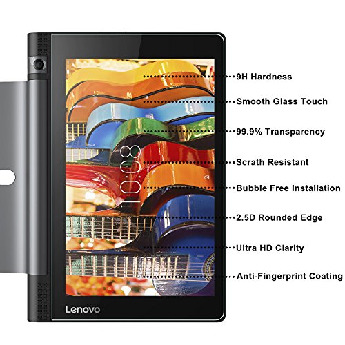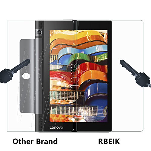 -. Binding : Electronics -. Brand : RBEIK -. Feature : Premium Tempered glass screen protector is specially designed for Lenovo YOGA Tab 3 8 inch Tablet. / Perfect Anti-scratch: The surface of the Tempered glass has a hardness of 9H, three times stronger than regular PET film. Even sharp objects like knives, keys and some other hard substances will not scratch it. / Oleophobic Coating: The glass has an oleophobic coating for an oil-resistant, anti-fingerprint, glass surface that is easy to clean. / High-response & high-transparency: Only 0.3mm thick + 99.99% light penetration ratio, preserves the original viewing quality and maintains the original touch experience. / Bubble-free adhesives for easy installation and no residue when removed. -. Label : RBEIK -. Manufacturer : RBEIK -. Model : lenovo yoga tab 3 8 screen protector -. MPN : lenovo yoga tab 3 8 screen protector -. PackageQuantity : 1 -. PartNumber : lenovo yoga tab 3 8 screen protector -. ProductGroup : PC Accessory -. ProductTypeName : COMPUTER_ADD_ON -. Publisher : RBEIK -. Size : 8 Inches -. Studio : RBEIK -. Title : Lenovo YOGA Tab 3 8 Screen Protector, RBEIK Premium 9H Tempered Glass Screen Protector for Lenovo YOGA Tab 3 8 inch tablet with 9H Hardness, Anti-Scratch, Anti-Fingerprint, Bubble Free Feature