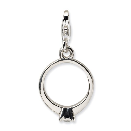 -. Title : Sterling Silver Cz Polished Ring W/lobster Clasp Charm