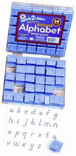 Ready2Learn™ Transitional Modern Alphabet Visual Closure Stampers aid students in making the jump from printing to cursive writing by reinforcing visual discrimination and providing practice for students to recognize the formation and tracing of fragmented manuscript letters. These 34 rubber stamps, with easy-to-grip plastic handles, come in their own clear, labeled and sectioned storage case and include 26 alphabet and 8 punctuation stamps.