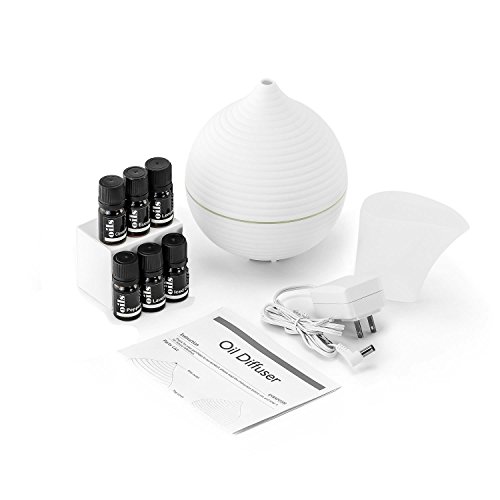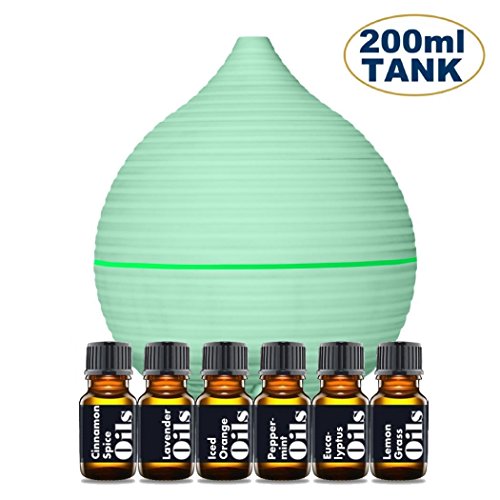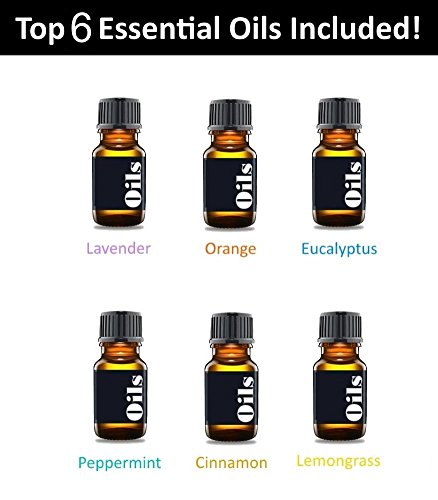 Essential Oil Diffuser Starter Kit – Includes Top 6 Essential Oils Lavender, Peppermint & more - Large 200ml Tank Quietly Mists up to 4 Hours – Auto Shut Off -...