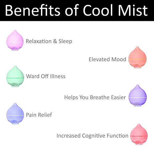♠ COOL MIST BENEFITS – Add moisture to dry air to start relieving dry skin, chapped lips and sinus issues – Oils add fresh, clean and tasty scents to the air around you creating an inviting and comfortable environment